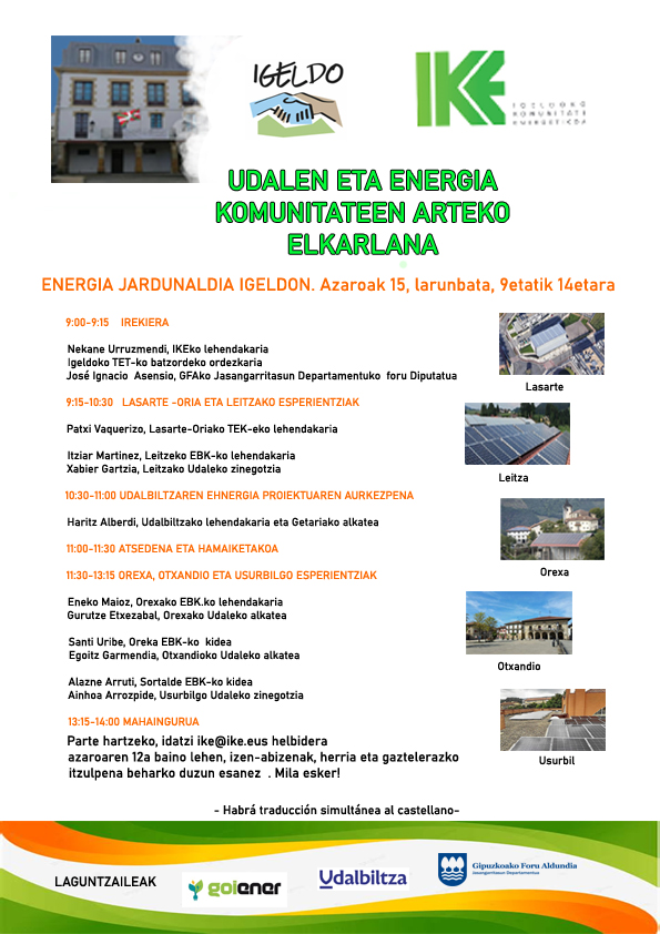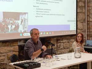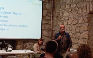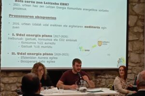 Haritz nos habló de la comunidad energética de segundo nivel en la que trabaja Udalbiltza y resumimos su presentación con una frase muy redonda: “La energía tiene que estar en manos de la ciudadanía, y para eso se dé, el asesoramiento y apoyo institucional a las comunidades energéticas es fundamental, porque este proceso tienen que hacerlo, sí o sí, junto con los ayuntamientos. Udalbiltza, al crear está comunidad de segundo nivel, lo que pretende es asegurar ese asesoramiento y apoyo institucional a todas las comunidades energéticas de Euskal Herria para que junto a los entes locales, consigamos avanzar en el proceso de transición ecosocial de Euskal Herria”.