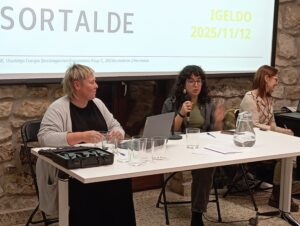 Ainhoa Arrozpide, Usurbilgo Udaleko zinegotzia eta Alazne Arruti, Sortalde EBKko kidea.